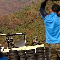 육군은 2011년 화랑훈련의 일환으로 지난 달 경기도 성남시 나라기록관에서 민·관·군·경 합동으로 피해복구훈련을 실시했습니다. 군 장병 및 예비군, 경찰, 소방서, 성남시청 등 8개 기관에서 총 120명이 참석한 가운데 실시된 이번 훈련은, 거동수상자 식별과 산불 및 건물화재 발생 상황, 거동수상자 격멸 및 화재진압, 사상자 구호 및 피해복구 순으로 진행되었습니다.